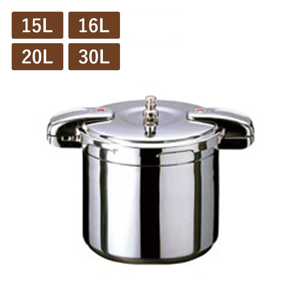 日々の業務で調理時間や燃料を節約できる省エネ設計の圧力鍋で、サイズは3L~30Lまで揃っています。